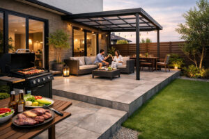 しかしタイルデッキがあれば、BBQコンロやテーブルを安心して設置でき、家族や友人と庭での時間をゆっくり楽しむことができます。